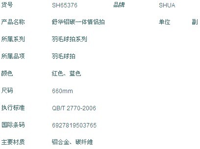1、拍套设计鲜亮、夺目,一支红色,一支蓝色。2、两支铝碳一体羽毛球拍。3、适合业余选手。