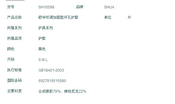 产品名称:护具 产品型号: