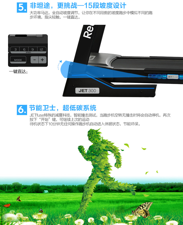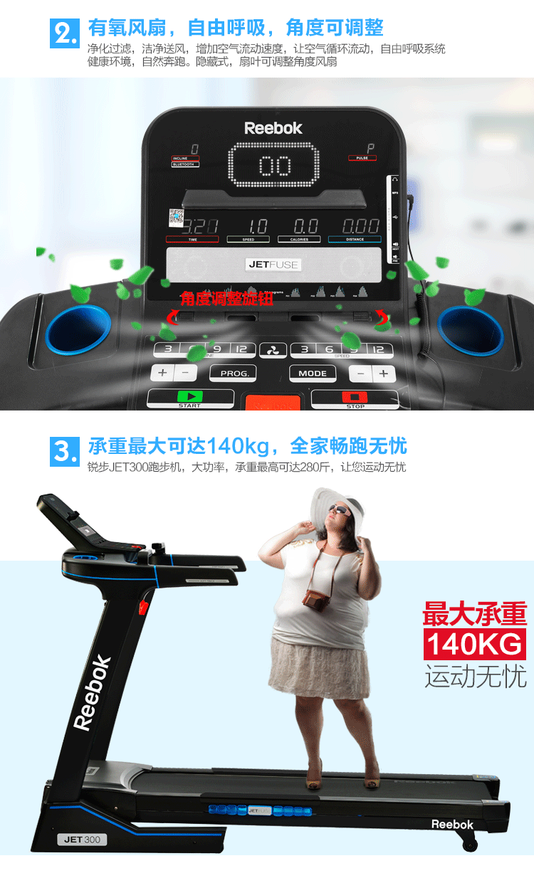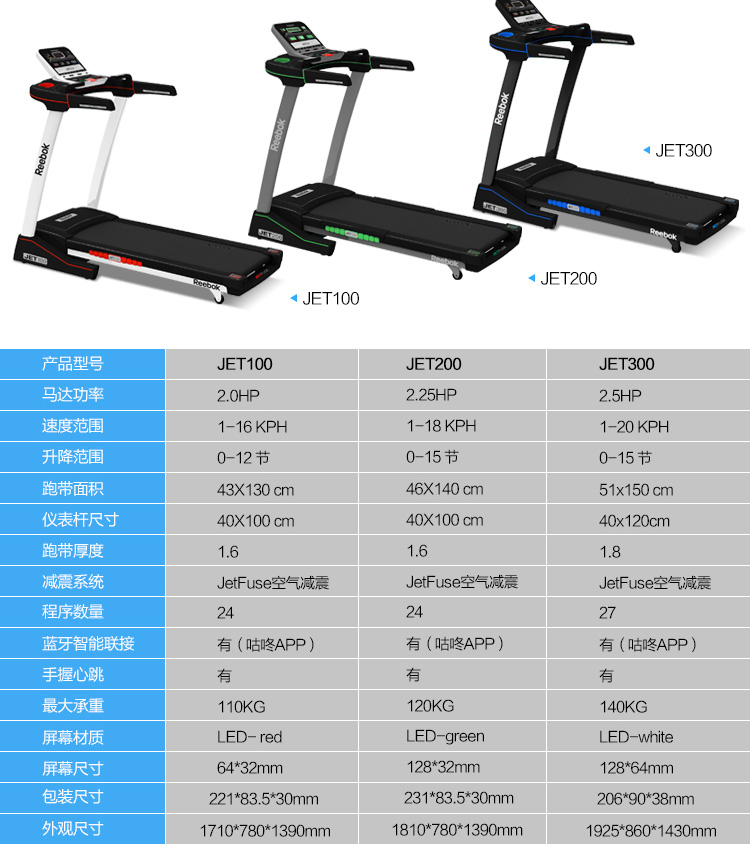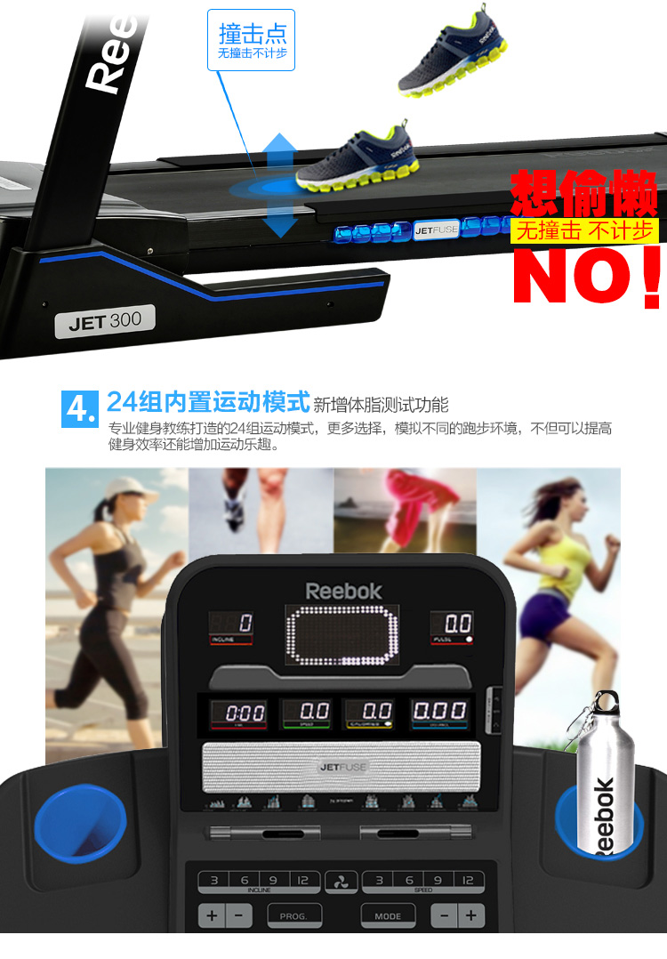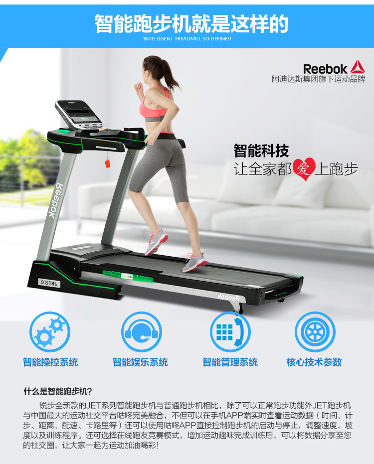 英国锐步(reebok )APP智能静音家用跑步机 JET200 JET200